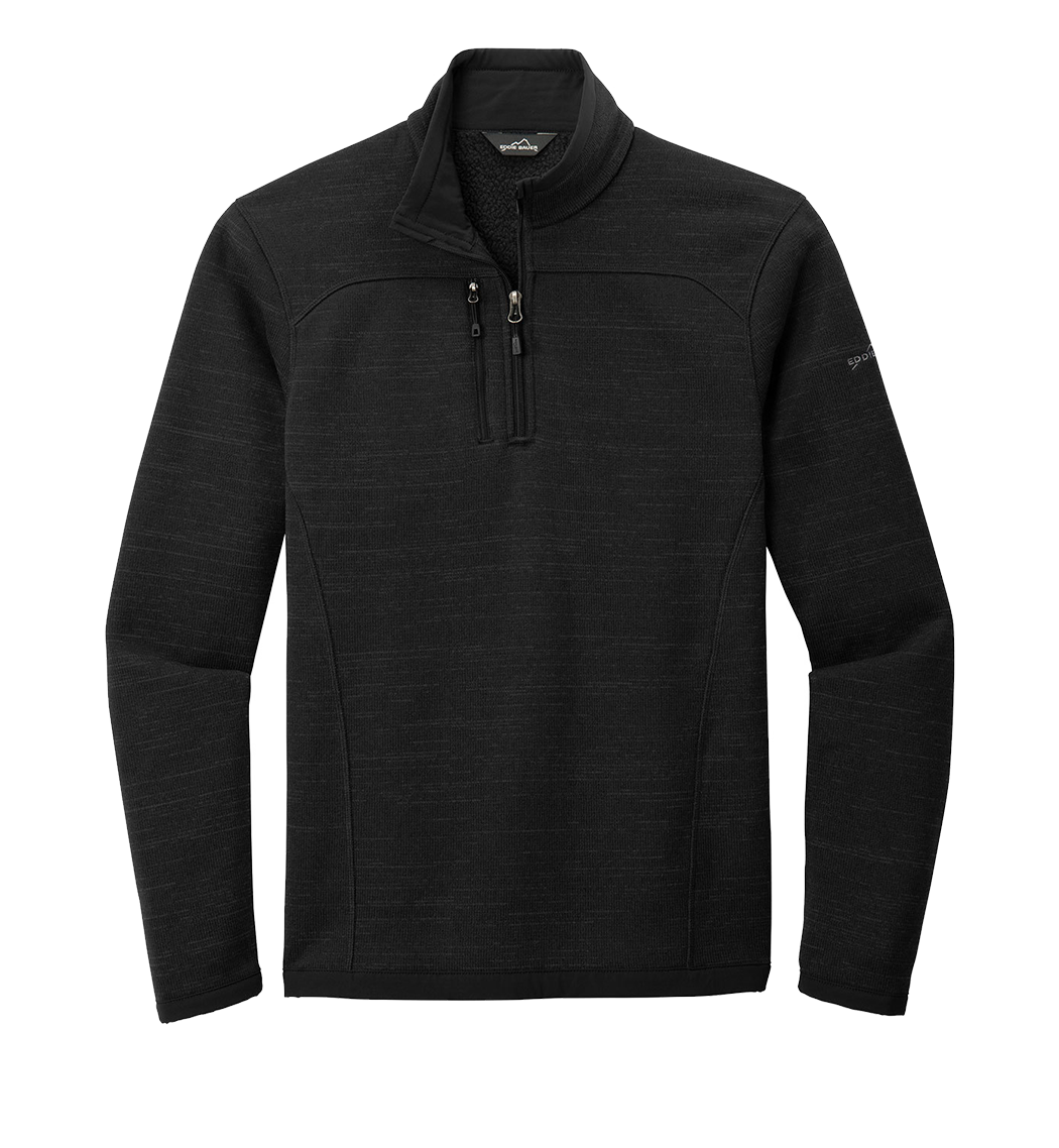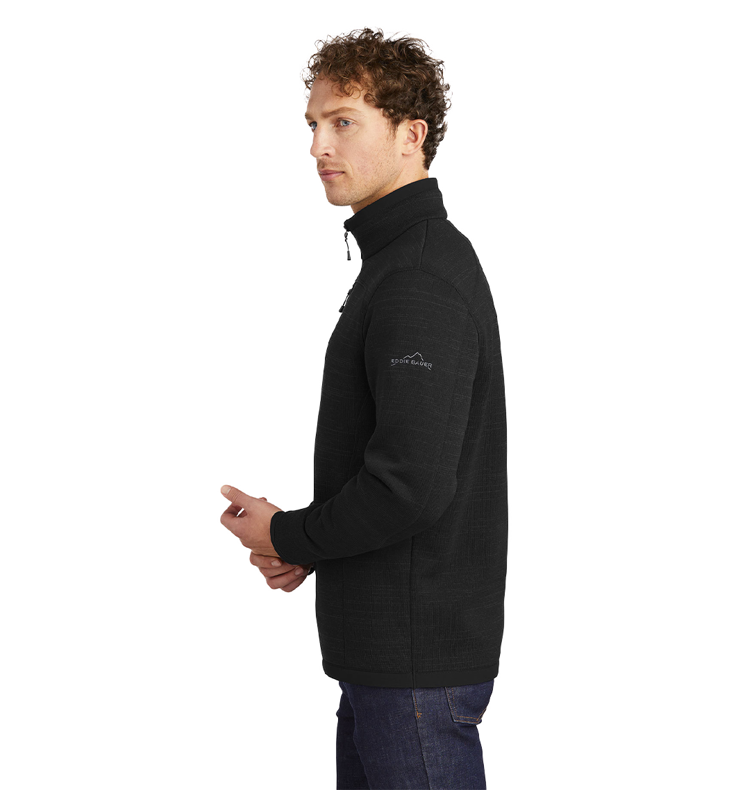 With an authentic outdoorsy lodge look, this refined sweater fleece delivers serious comfort. Smooth-faced and brushed-back for warmth, these anti-pill styles also have stretch for easy movement. Woven fabric details add sophistication. Cadet collar, exposed coil zippers, open cuffs and open hem. Zippered chest pocket and embroidered Eddie Bauer contrast logo on the left sleeve. Made of 8.1-ounce, Polyester sweater fleece with 86/14 polyester/spandex woven trim. Produced using Low Impact Technology (L.I.T.™), which uses less dyestuffs, thermal energy and water for enhanced softness, performance and after-care quality.