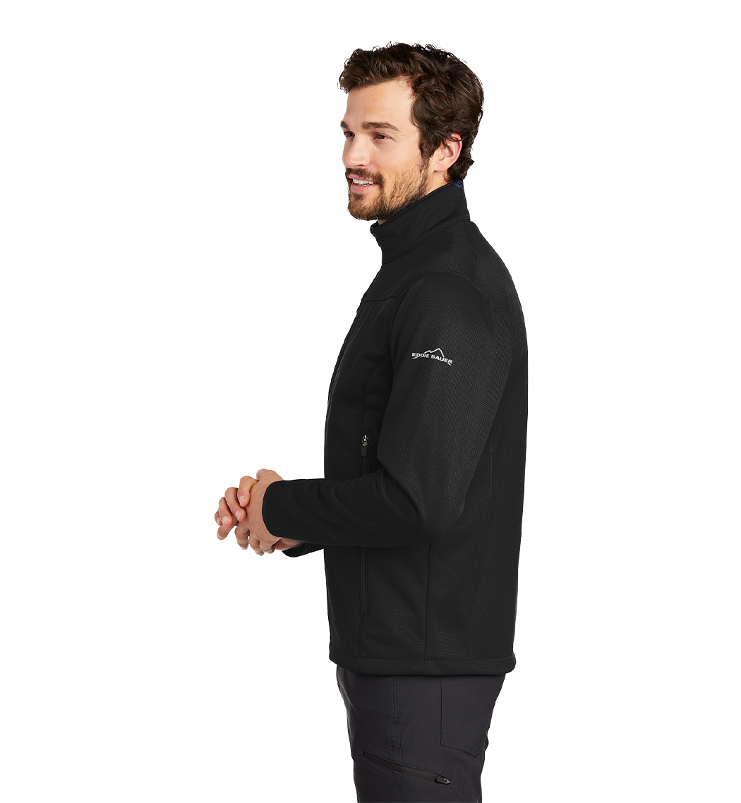 Developed to optimize performance and comfort this technical soft shell is made with highly waterproof and breathable 10K/10K fabric so that it can take on active sports and perform equally as well as it does in town. Elongated front zippered pockets double as air vents for enhanced breathability when open. 10 000MM fabric water protection rating 10 000G/M2 fabric breathability rating interior storm flap chin guard reverse coil locking zippers binding at cuffs open hem with locking drawcord. Zippered chest pocket reflective Eddie Bauer logo on left sleeve.Made of Polyester knit shell with a durable water-repellent (DWR) finish and bonded to a laminated film insert. Polyester microfleece interior.