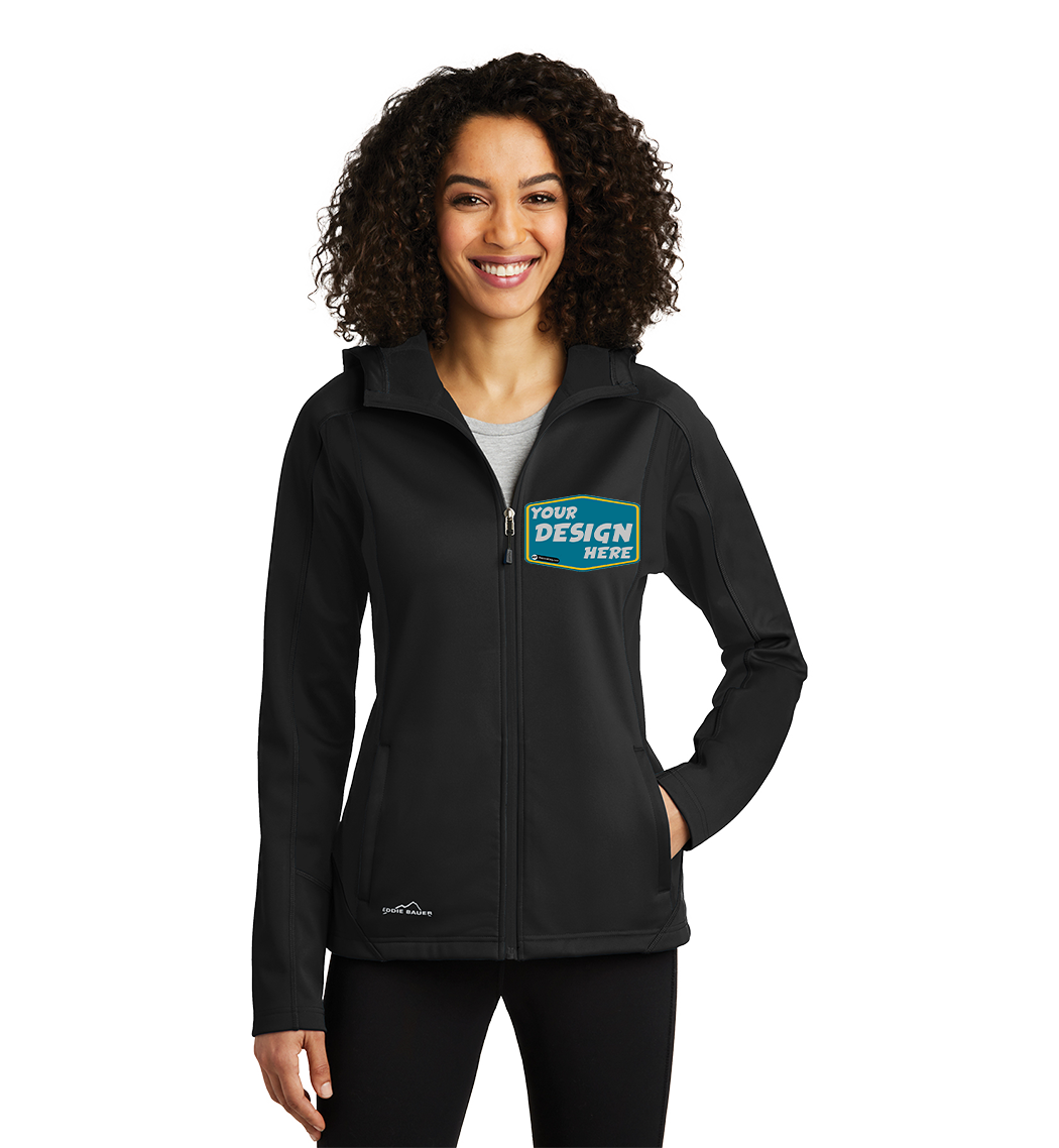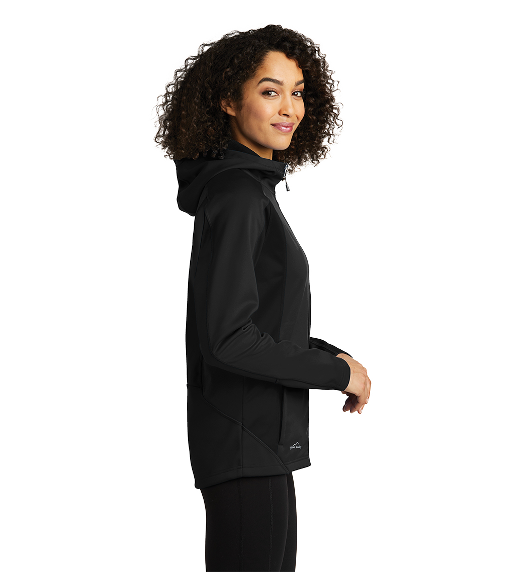 With 3K/3K waterproof and breathability fabric ratings this knit soft shell has stretch for ease of movement and transitions from the workday streets to the weekend trails-regardless of the forecast. Exclusive StormRepel durable water-repellent (DWR) technology keeps you warmer and drier. Attached hood and princess seams. Front tricot-lined zippered pockets reverse coil zippers open cuffs and open hem. Decoration access pocket. Reflective Eddie Bauer logo heat transfer on right hem. Made of Polyester knit shell with DWR coating bonded to a water-resistant laminated film insert. Polyester brushed microfleece interior.