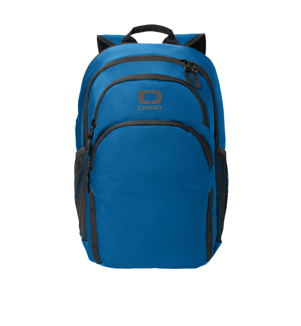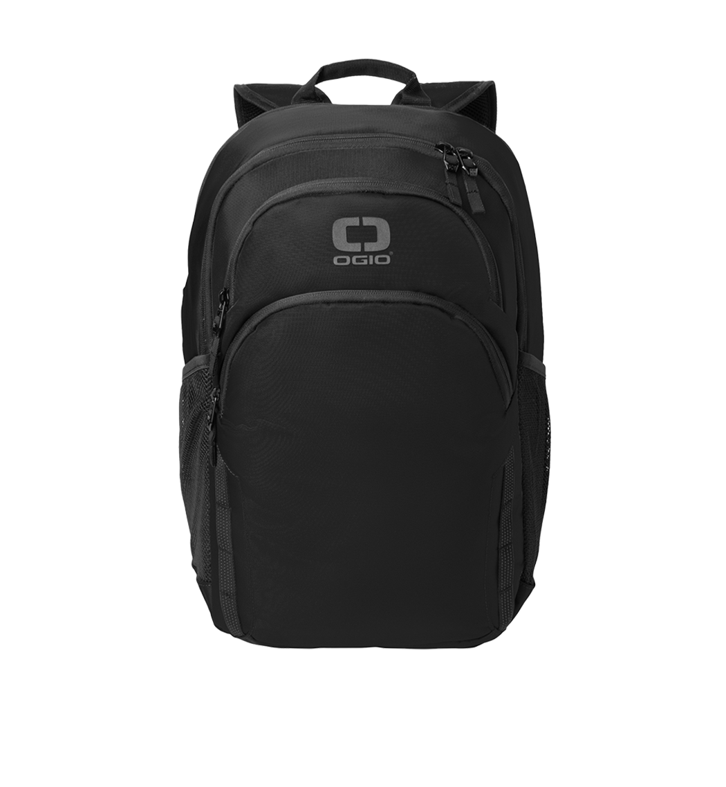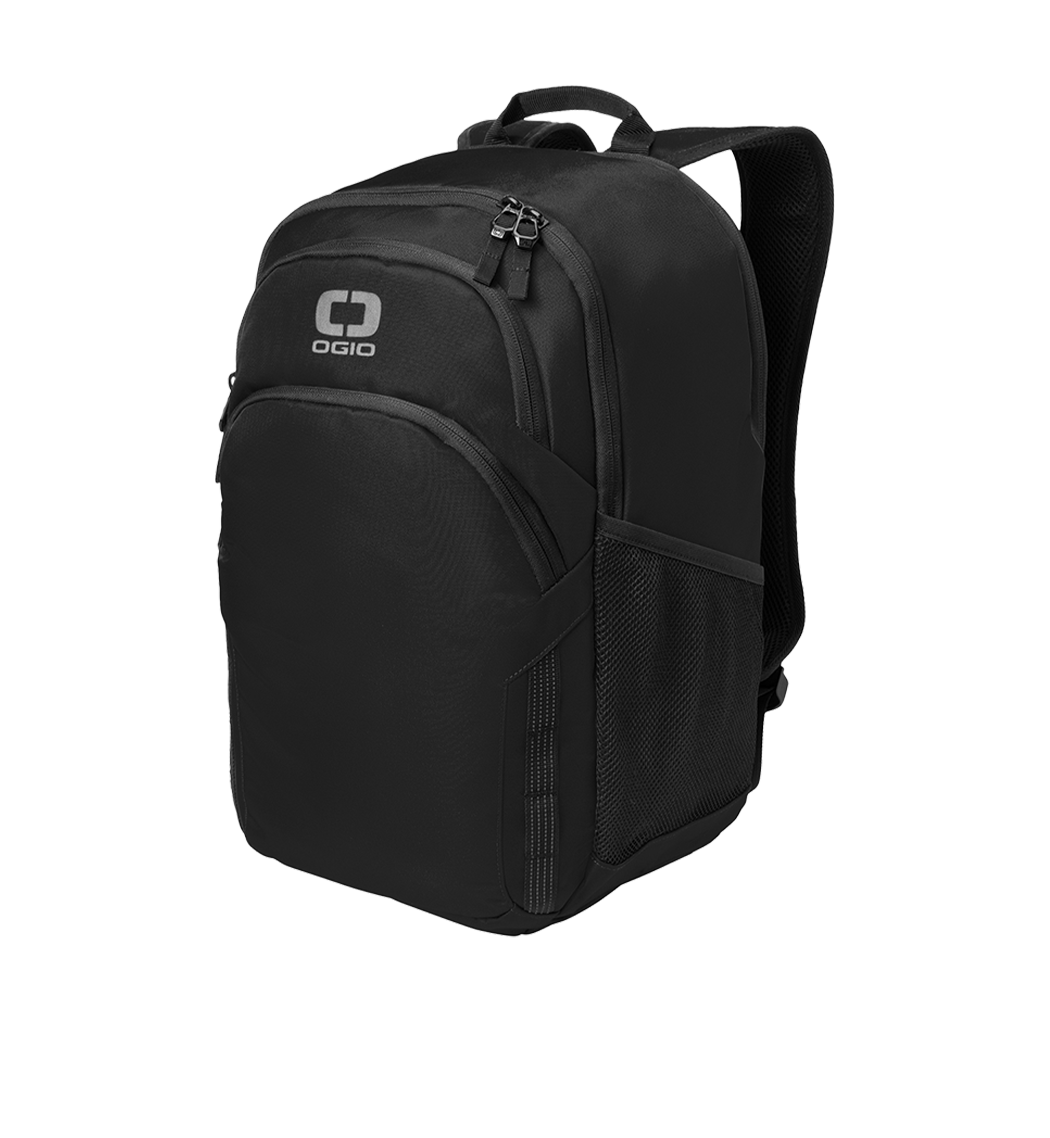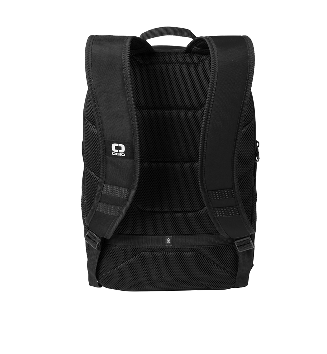 500D poly with PVC Back dedicated laptop compartment Spacious main compartment with interior office Top zippered valuables pocket Front daisy chain Front zippered compartment with dark reflective webbing trim Padded air mesh back panel Ergonomic padded shoulder straps with tension locks and dark reflective webbing trim Integrated luggage trolley pass through on back Top webbing grab handle Black metal zipper pulls Side mesh pockets High-density dark reflective O screen print Woven OGIO label at back strap Laptop sleeve: 13 h x 12.5 w; fits most 15 laptops Dimensions: 18.75 h x 12.5 w x 8.5 d Capacity: 1 464 cu. in./24 L Weight: 1.81 lbs./0.821 kgNote: Bags not intended for use by children 12 and under