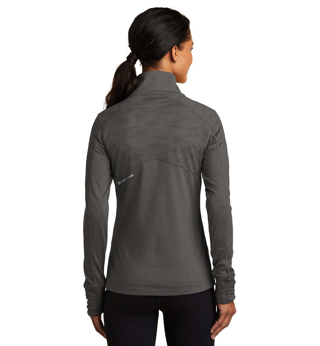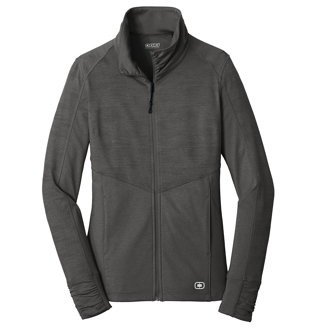 Tonal printed O pattern on heathered yarn-dyed fabric