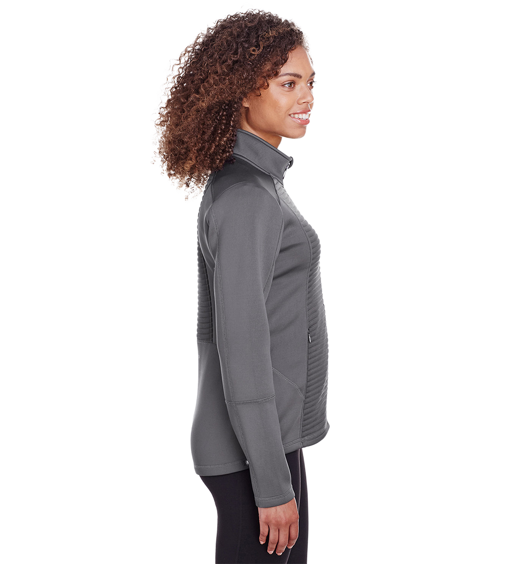 Fabric mix of neoprene and 100% polyester bonded knit with polyfill channels