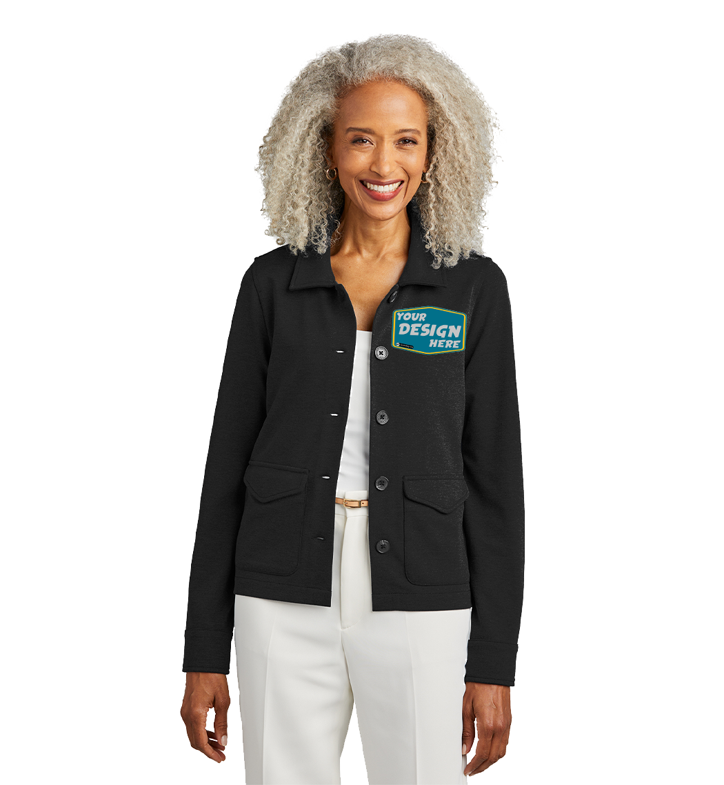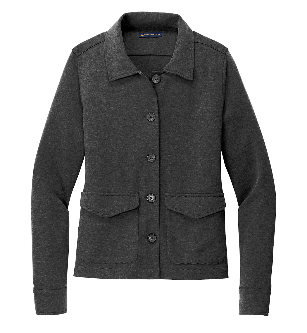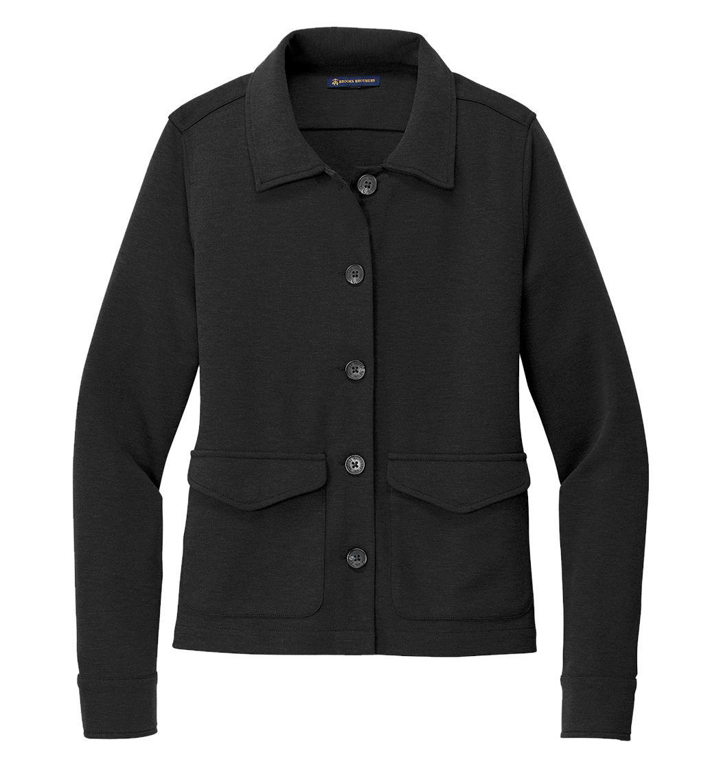 A structured double-knit style with a luxuriously soft hand, this versatile woman’s jacket adds a touch of utilitarian flair with a full button-front closure. The jacket can be cinched with a hidden waist drawcord for a more form-fitting look.