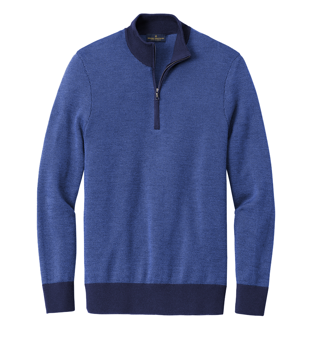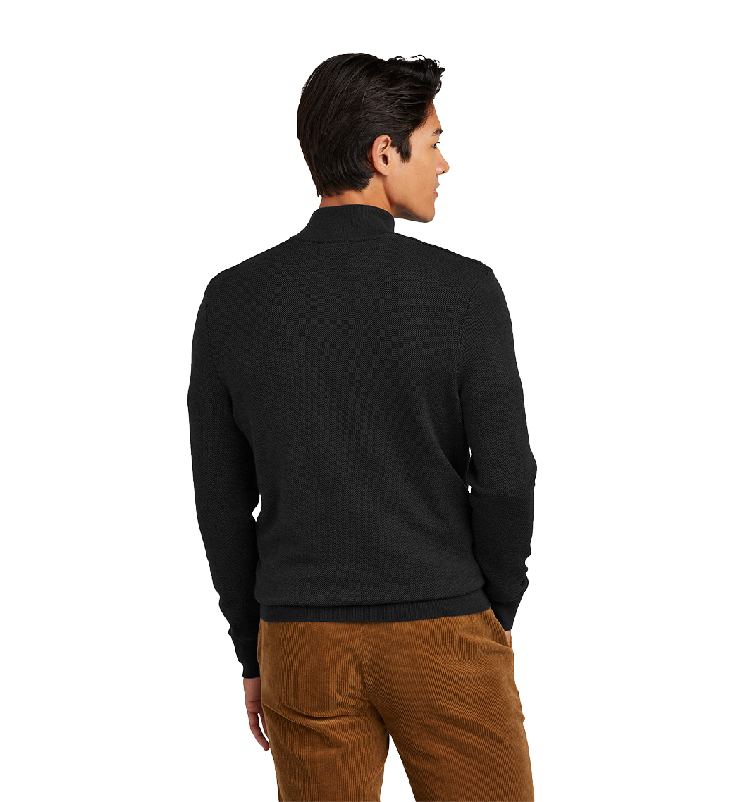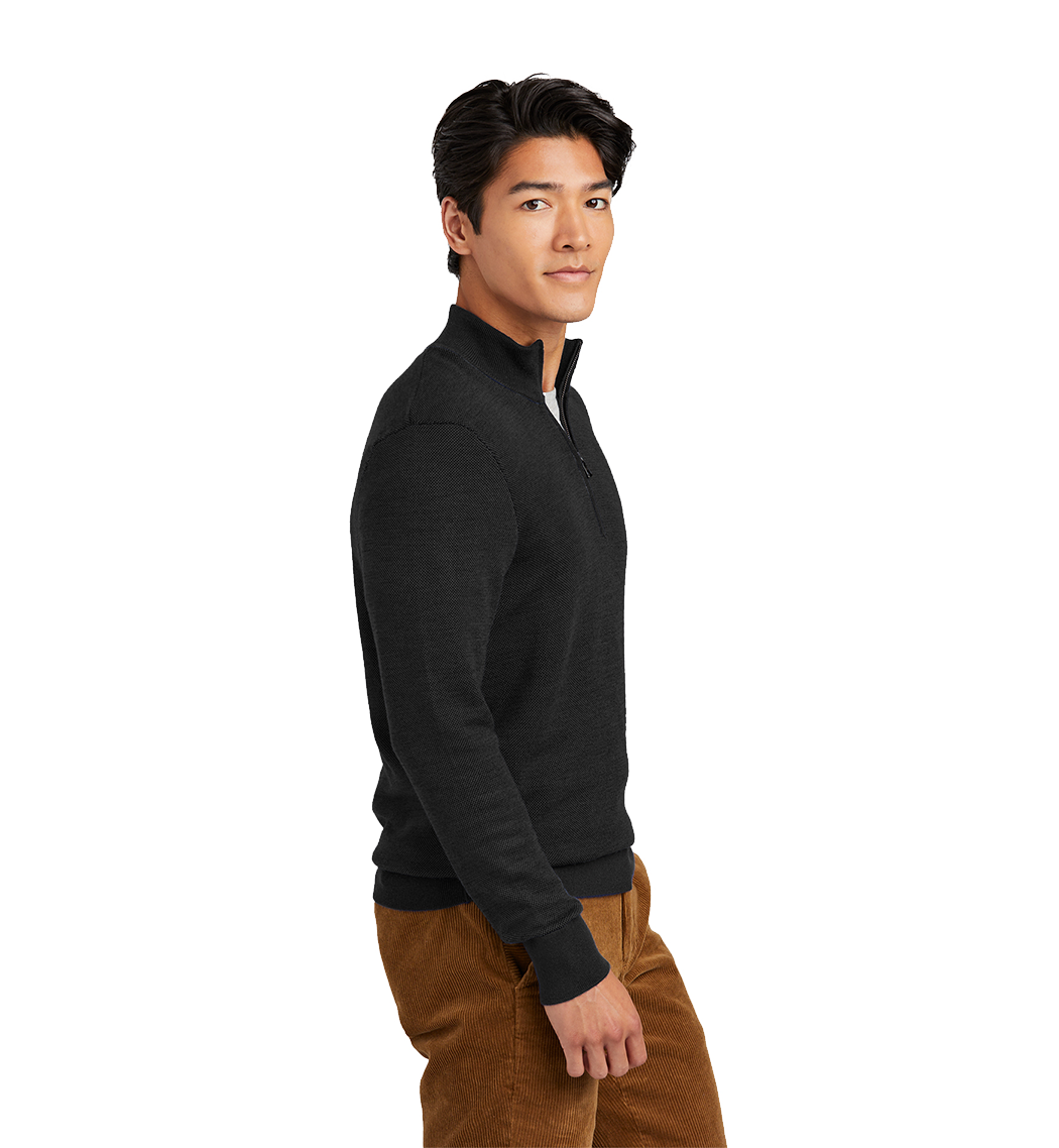 The perfect throw-on-and-go option for any event, this machine washable 1/4-zip sweater features natural Merino wool and an eye-catching birdseye pattern.