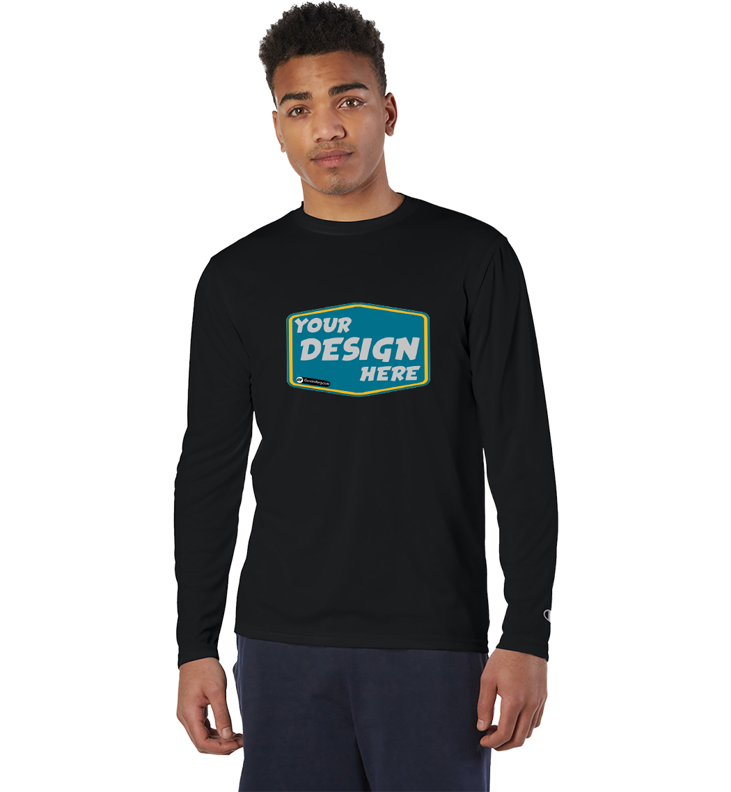 Reflective “C” logo on left sleeve and Champion® script at center back neck