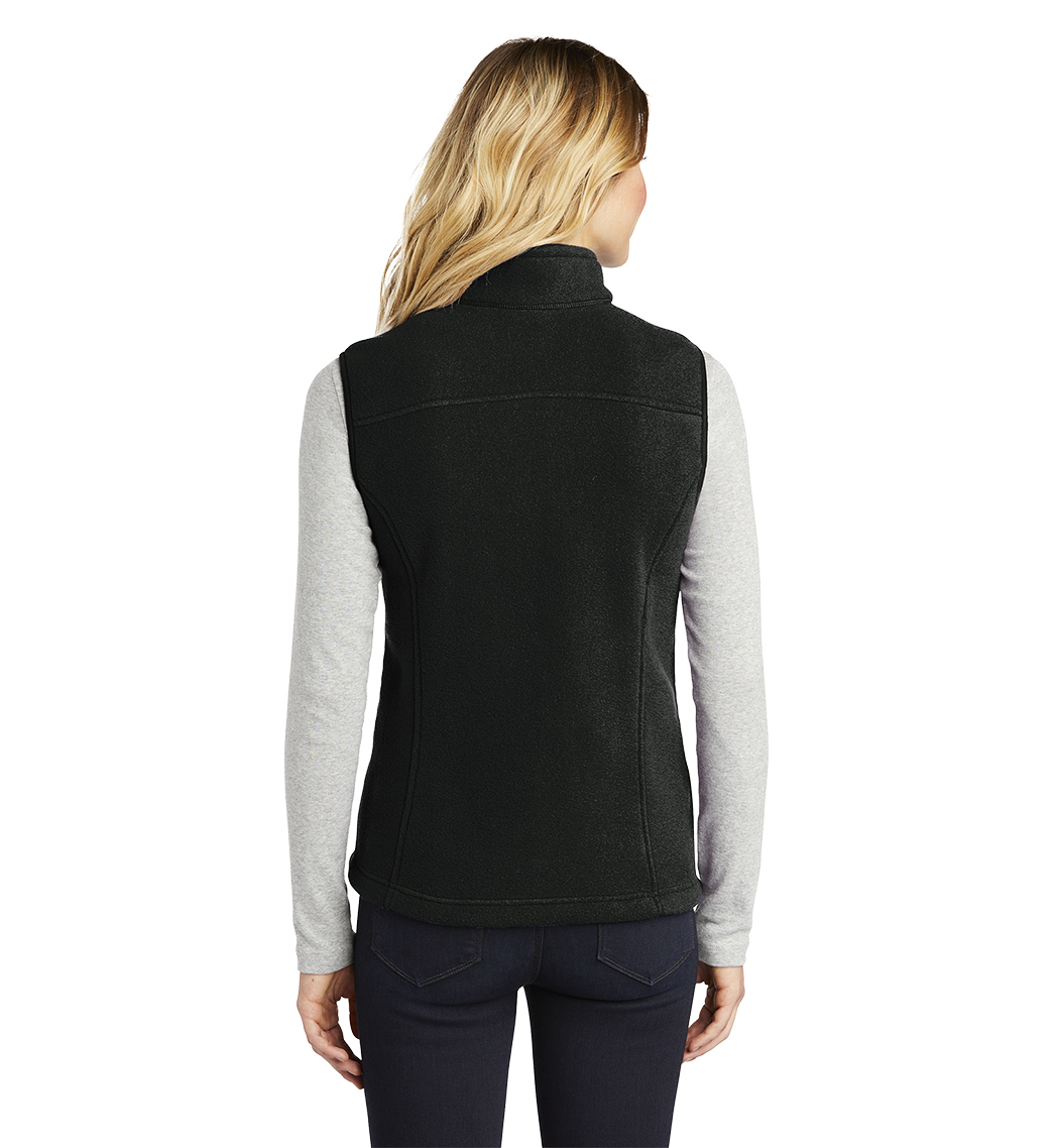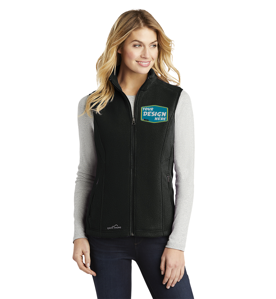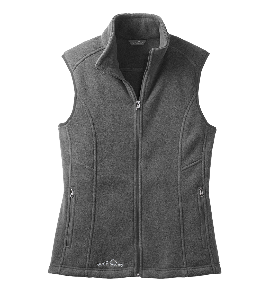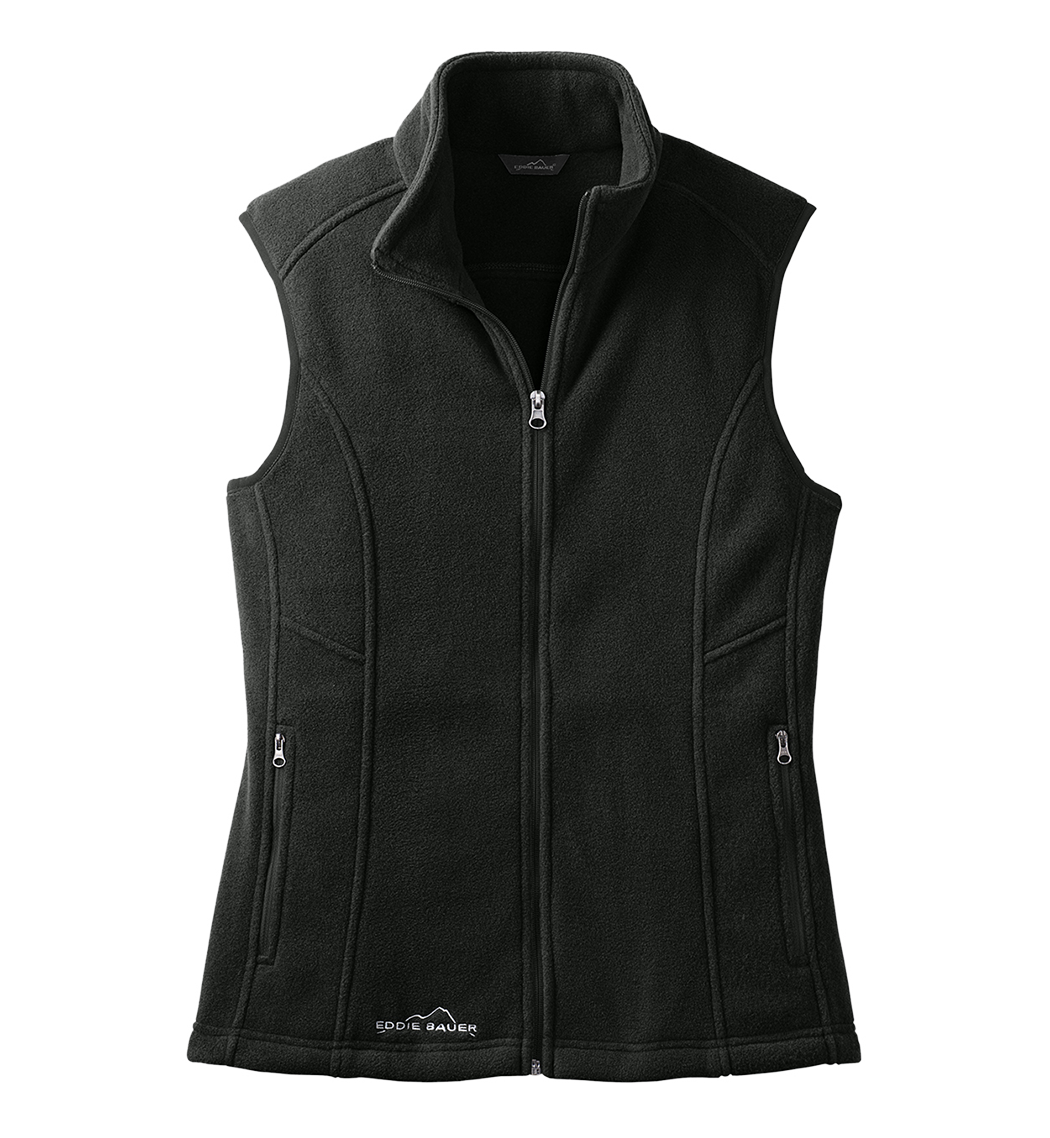 Ward off early morning chills by insulating your core with this soft, cozy vest. Princess seams, dyed-to-match reverse coil zippers, front zippered pockets with tricot lining, binding at armholes and an open hem. Embroidered Eddie Bauer contrast logo on right hem. Made of 6.9-ounce, Polyester fleece. Produced using Low Impact Technology (L.I.T.™) which uses less dyestuffs, thermal energy and water for enhanced softness, performance and after-care quality.