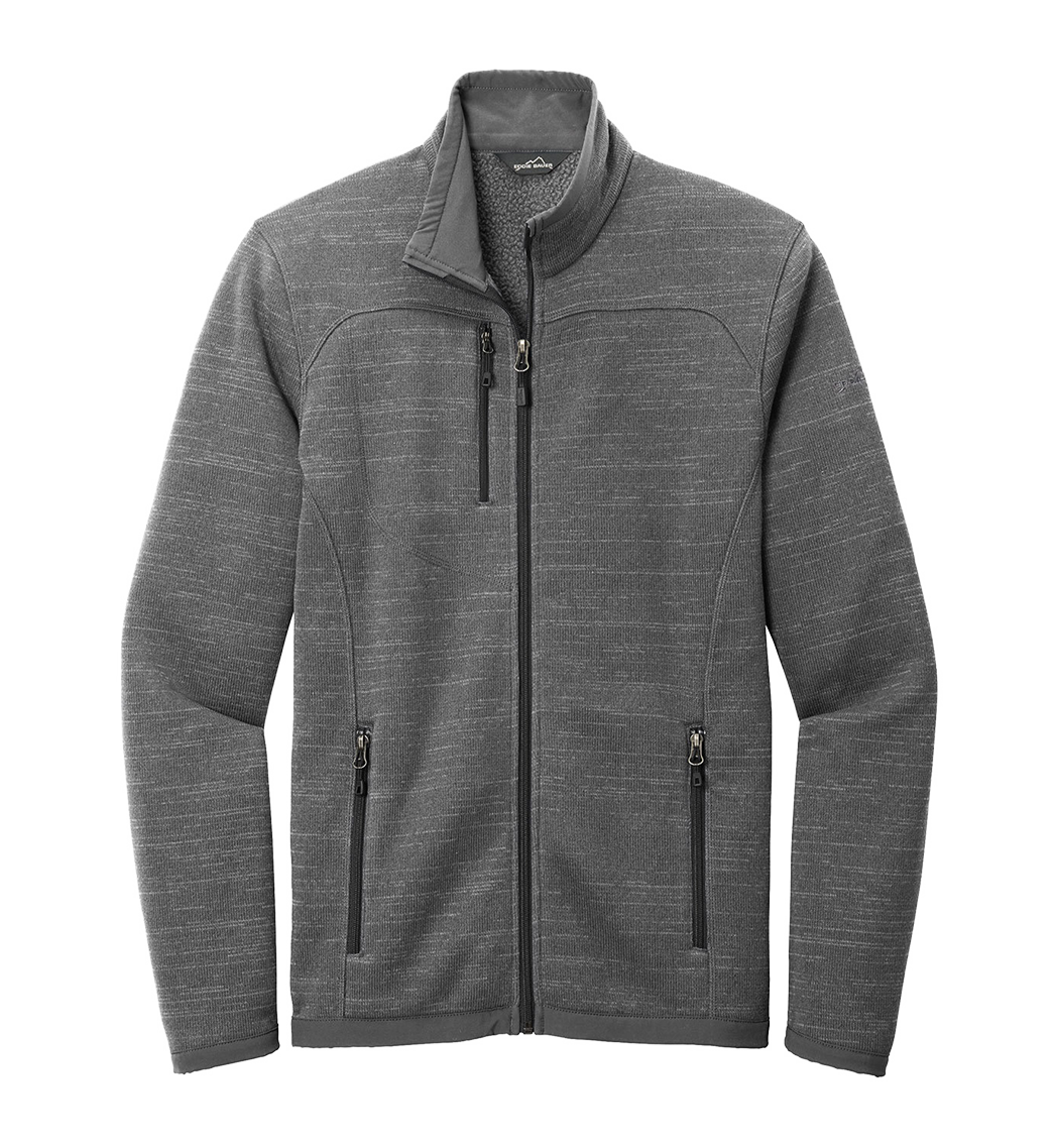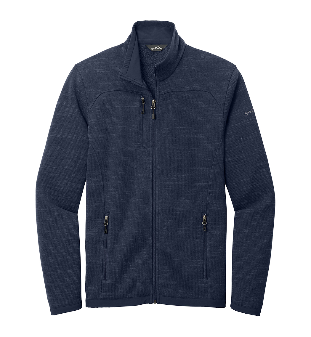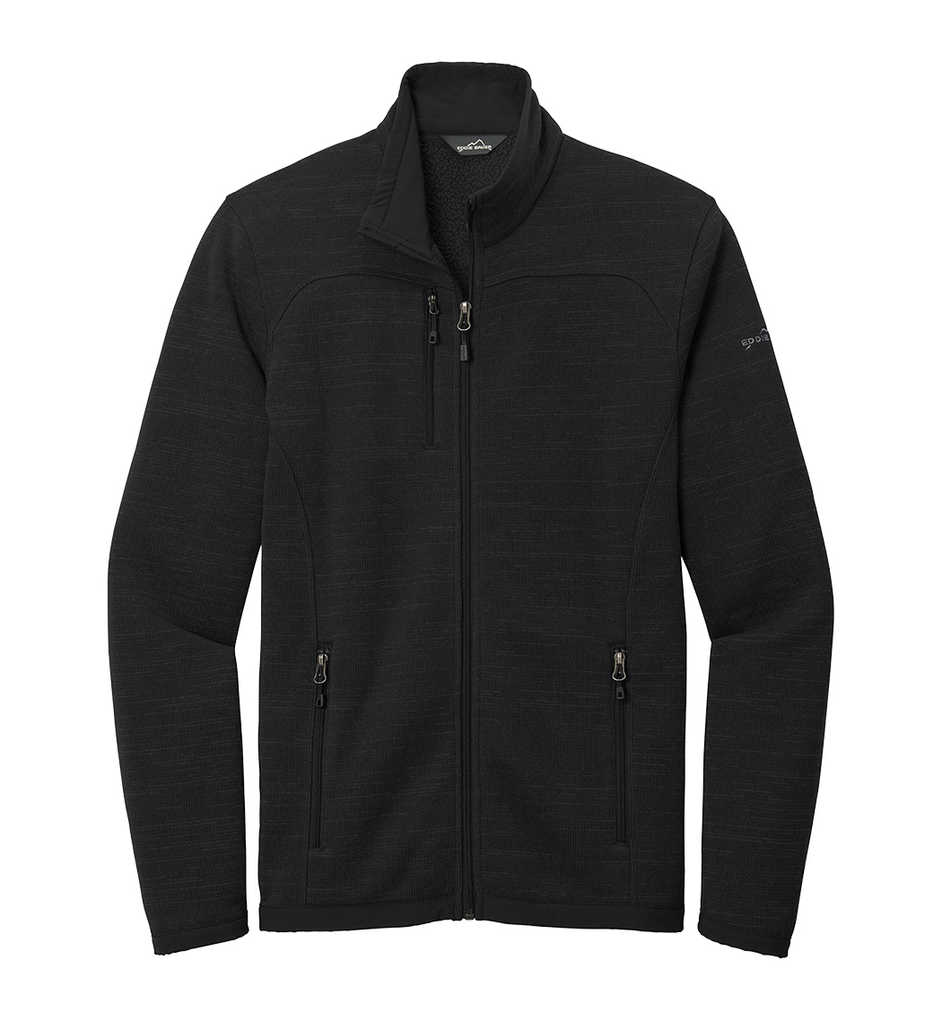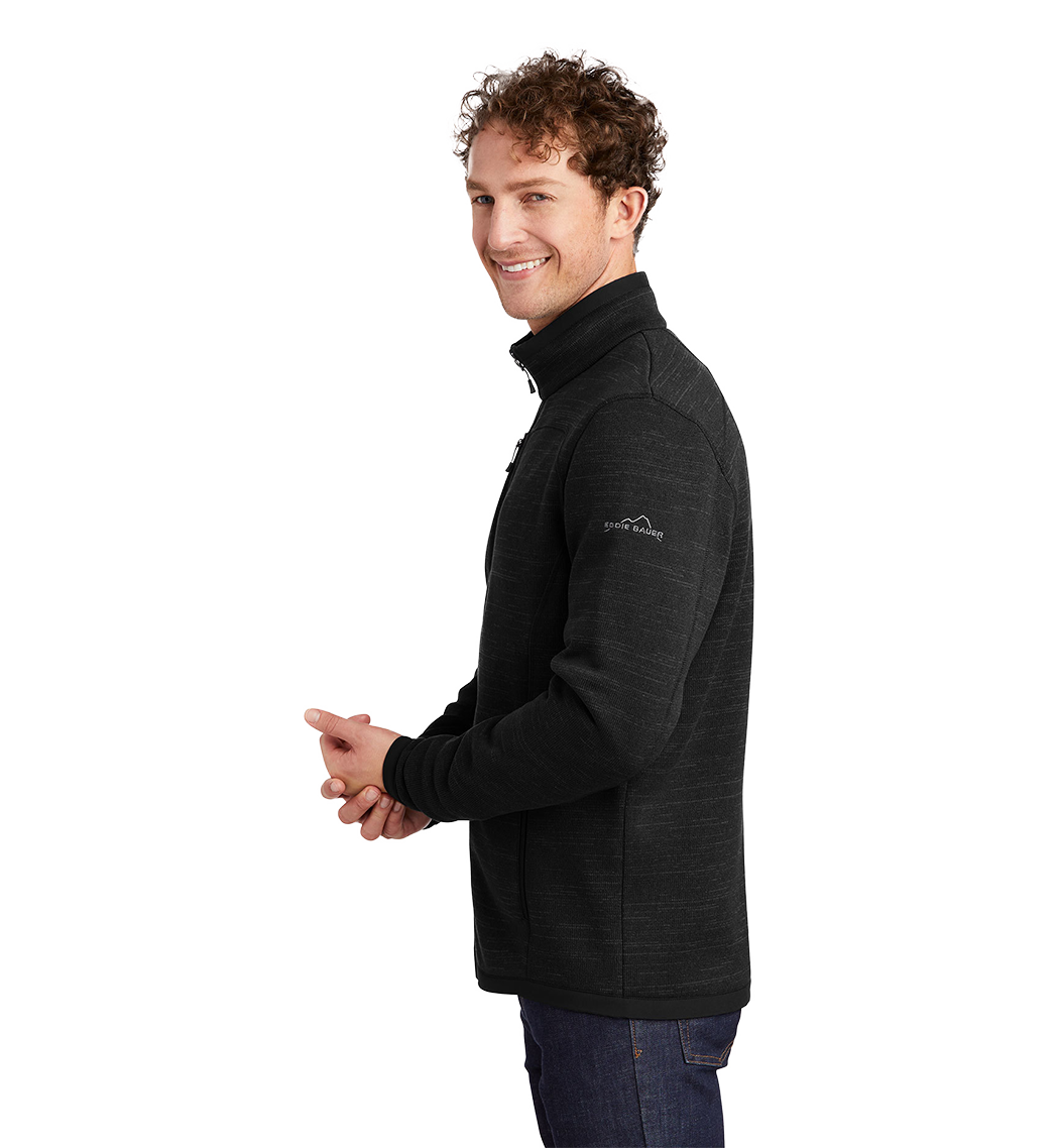 With an authentic outdoorsy lodge look, this refined sweater fleece delivers serious comfort. Smooth-faced and brushed-back for warmth, these anti-pill styles also have stretch for easy movement. Woven fabric details add sophistication. Cadet collar, exposed coil zippers, open cuffs and open hem. Zippered chest pocket, front zippered pockets and embroidered Eddie Bauer contrast logo on the left sleeve. Made of 8.1-ounce, Polyester sweater fleece with 86/14 polyester/spandex woven trim. Produced using Low Impact Technology (L.I.T.™), which uses less dyestuffs, thermal energy and water for enhanced softness, performance and after-care quality.
