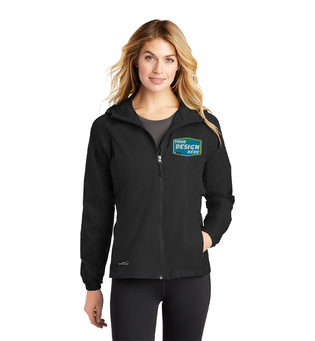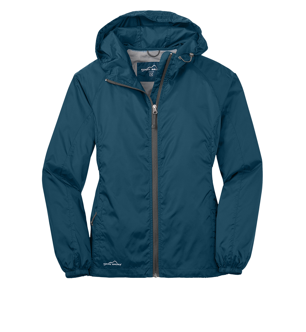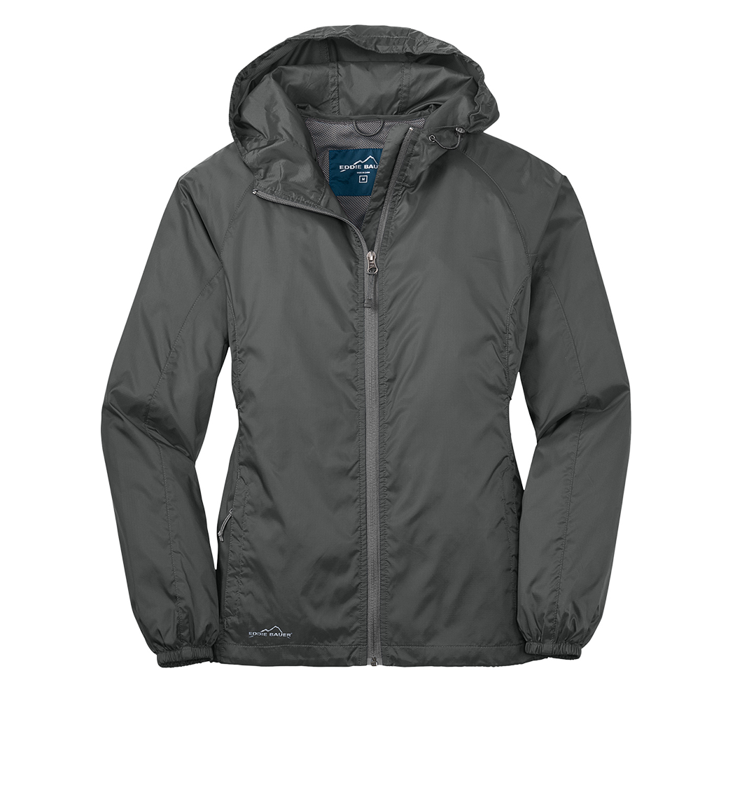 Wind was the inspiration for this compact layer. Plus, it packs down into its own logo-adorned pocket, making it easy to carry wherever you go. Hood with locking drawcords for adjustability, contrast reverse coil zipper, underarm vents, front zippered pockets, packs into its own zippered right pocket, elastic cuffs and an open hem. Contrast Eddie Bauer logo on right hem. Made of 100% nylon.