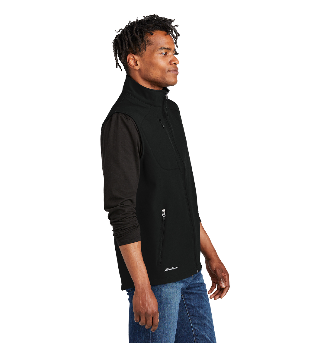 These fleece-lined vests offer next-level mobility and performance thanks to 3K/3K waterproof breathable fabric with 4-way stretch and a durable water-repellent (DWR) finish. They feature an interior storm flap and chin guard. Streamlined and refined elements include an invisible zippered chest pocket reverse coil center front zipper with an Eddie Bauer logo zipper pull. Reverse coil zippered hand pockets. Embroidered Eddie Bauer logo on right hem. Made of 90/10 polyester/spandex bonded to a waterproof film insert and a Polyester fleece lining.