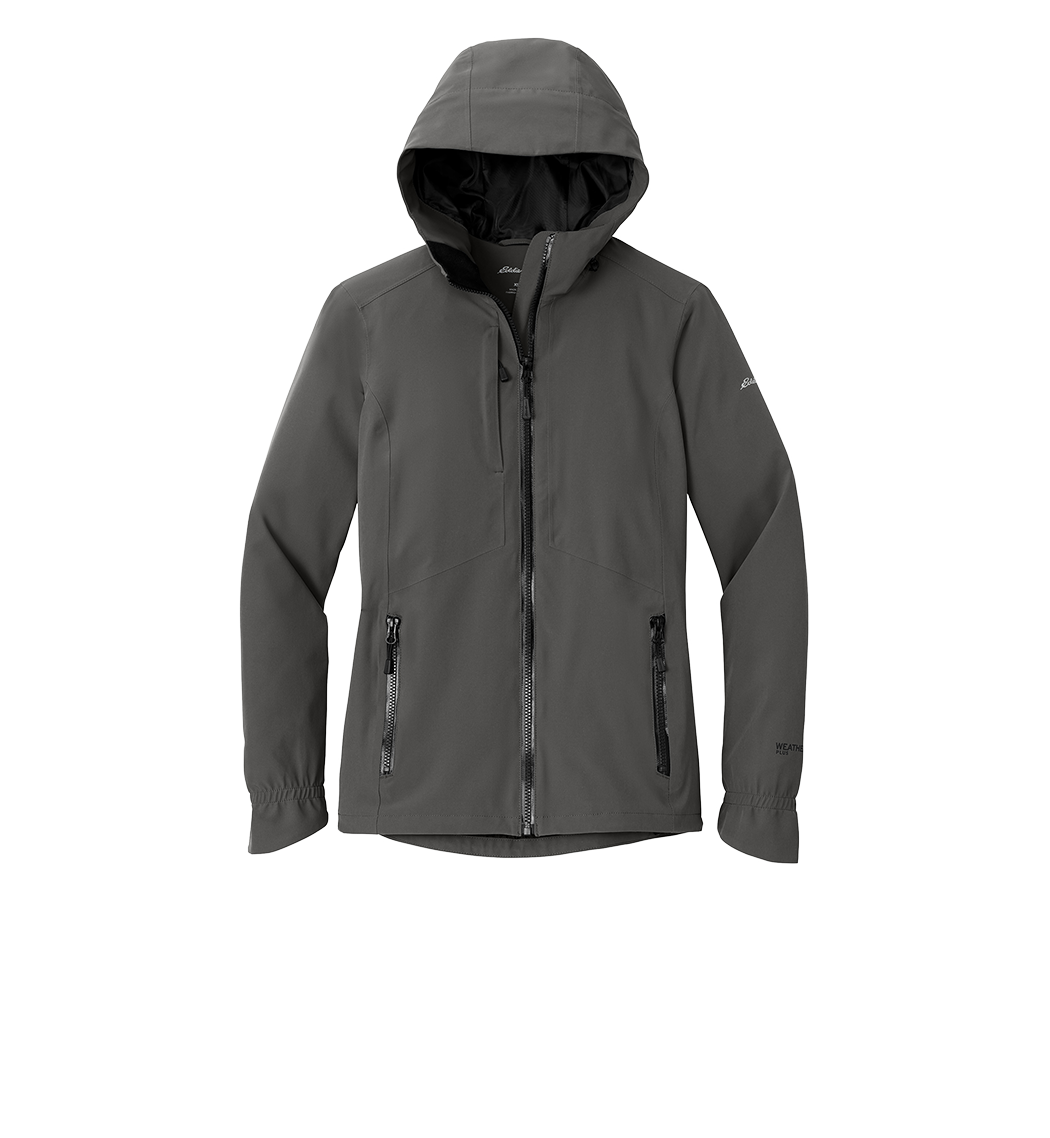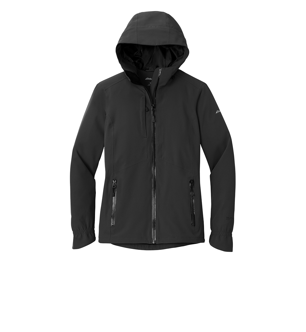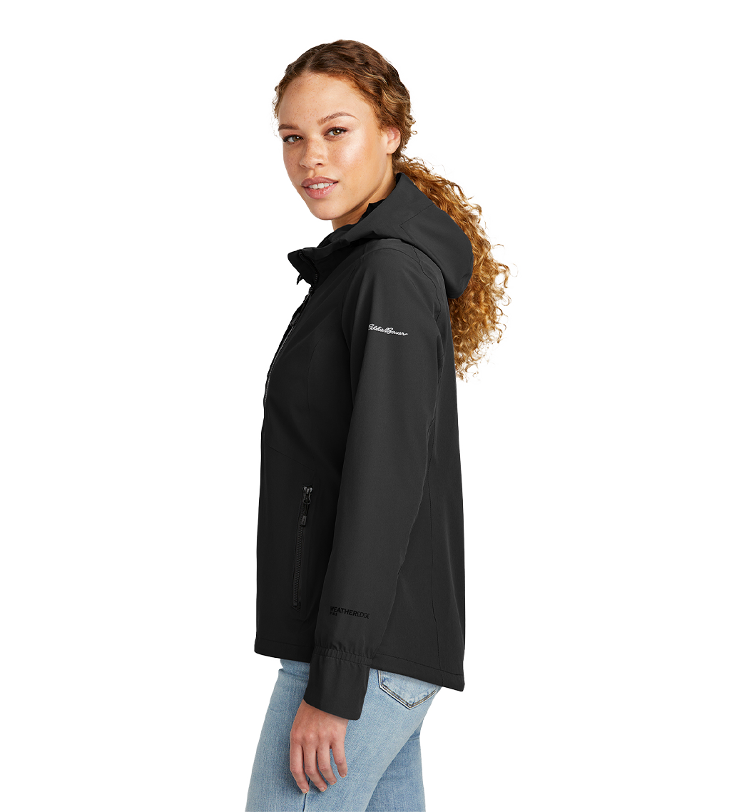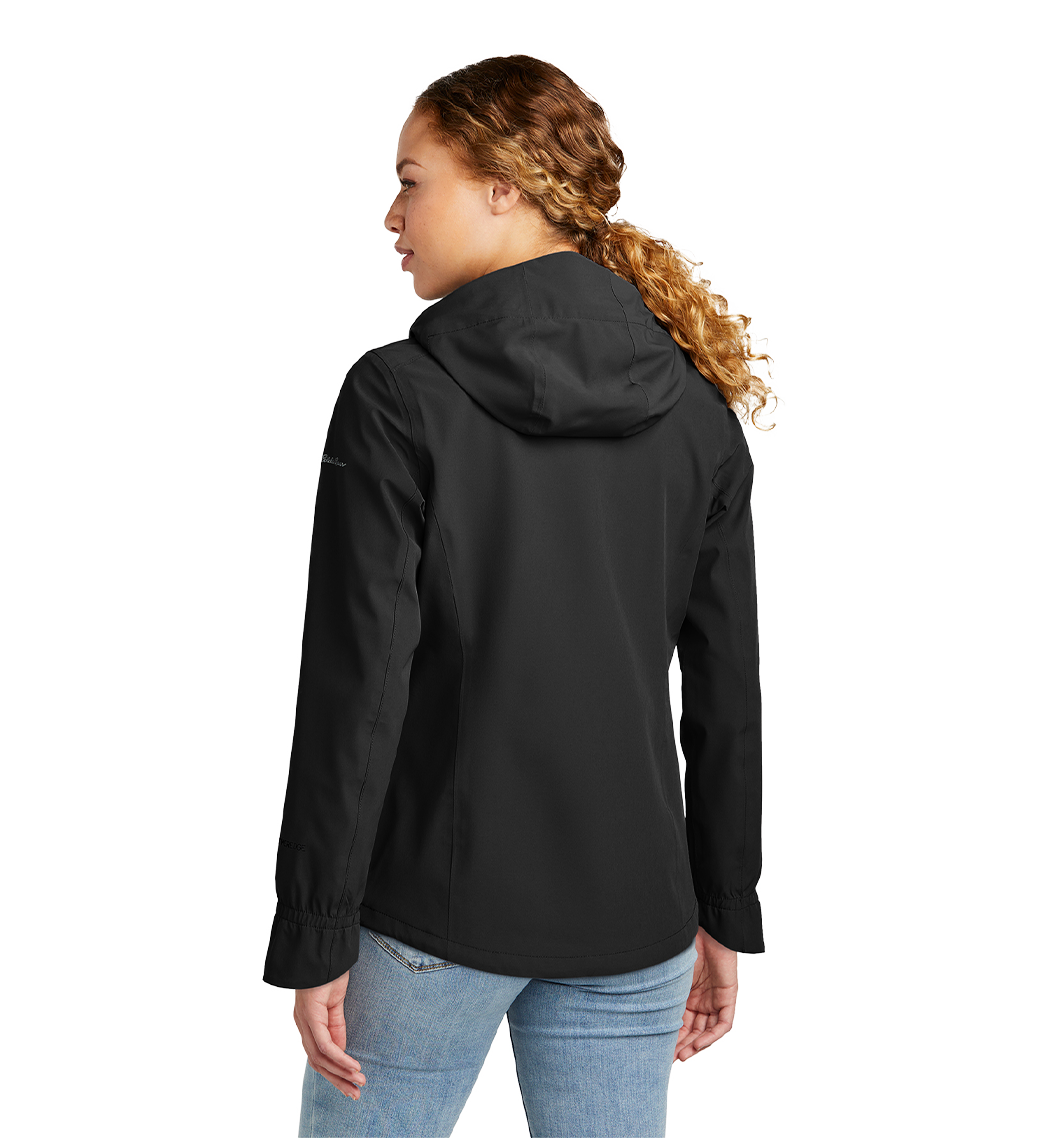 Fully seam-sealed and engineered from extremely waterproof breathable 10K/10K fabric this jacket helps ensure warmth and comfort-no matter what Mother Nature serves up. Designed with stretch it features exclusive WeatherEdge Plus and StormRepel durable water-repellent (DWR) technology for unparalleled protection against rain snow sleet and hail. Adjustable hood with locking drawcord waterproof front molded zippered pockets decoration access pocket. Full-length interior storm flap. Front and back seaming for a flattering fit. Adjustable locking drawcord hem. Contrast Eddie Bauer heat transfer logo at left shoulder. Contrast WeatherEdge Plus heat transfer logo on left cuff. Made of 92/8 poly/spandex with Polyester lining.