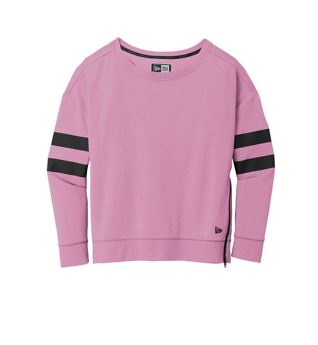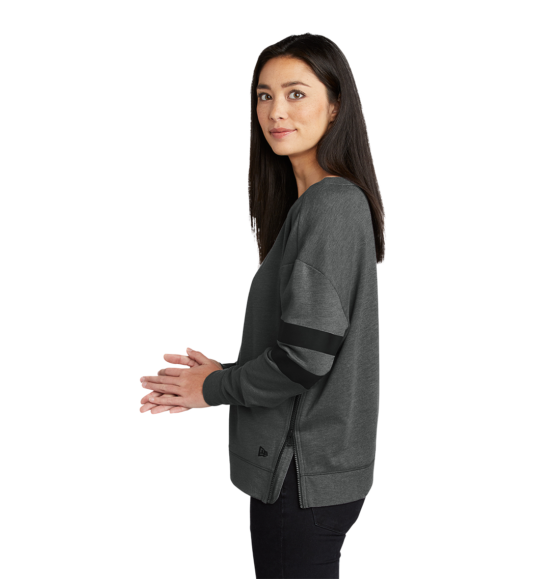 With a boxier and shorter silhouette, this relaxed crew has a side zip for a bit of attitude.
