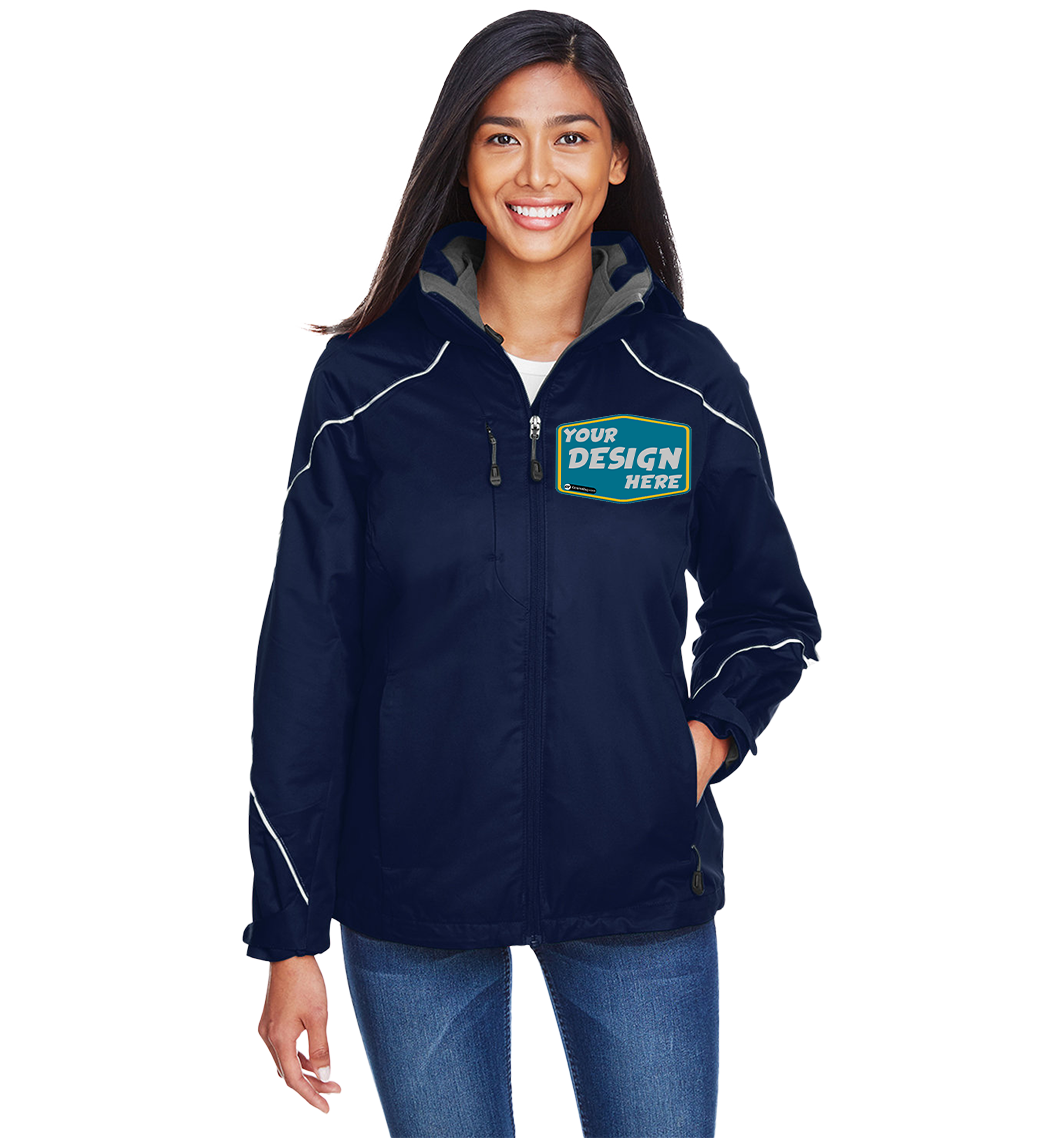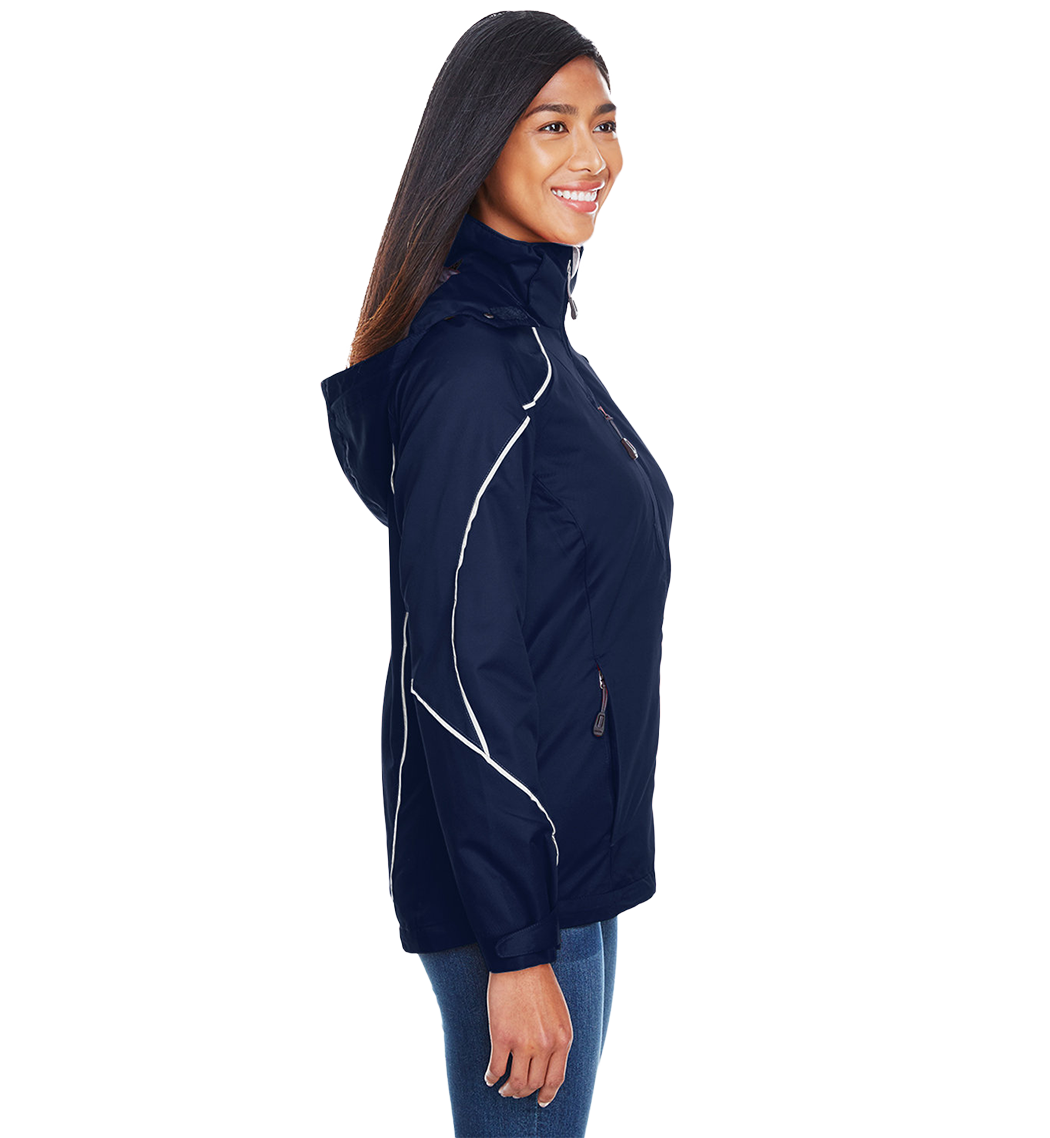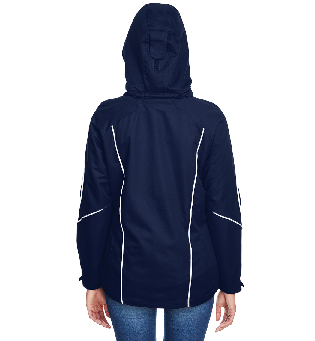 Inside storm placket with brushed tricot chin guard and collar