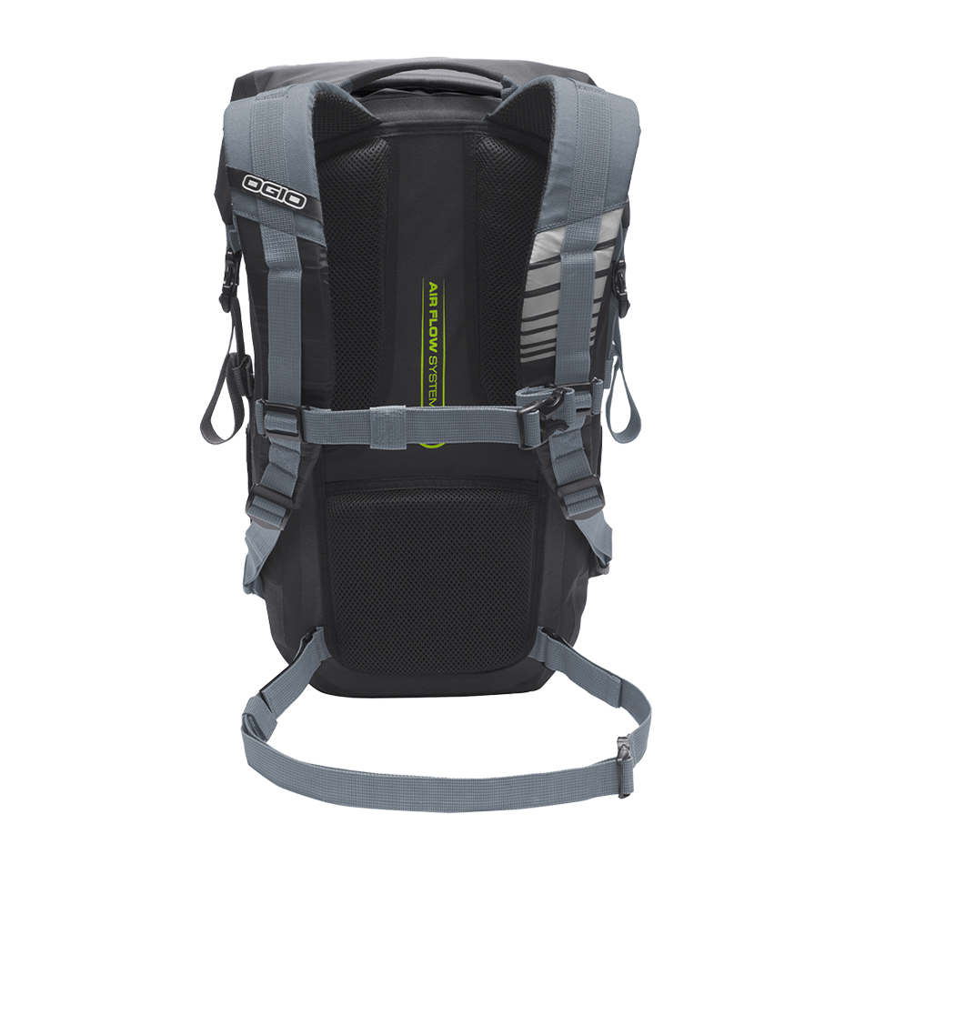Ready for everything from sprinkles to a deluge this completely waterproof pack employs a roll-top design to keep water out.420D nylon with TPU film laminate Waterproof main compartment with roll-top construction Easy-access removable laptop/tablet organization sleeves Removable high visibility liner Organization panel with two zippered pockets Quick-access water-resistant front zippered stash pocket Ultra-padded air mesh back with Air Flow System Off-center removable hip belt Dual Density shoulder straps Two-way adjustable sternum strap Strap containment system to ensure all straps are secured Laptop sleeve: 14.5 h x 9.75 w x 1 d; fits most 15 laptops Dimensions: 20.5 h x 10.5 w x 6.75 d (rolled) Capacity: 1 600 cu.in./26.2 L Weight: 2.5 lbs./1.49 kgBags not intended for use by children 12 and under.
