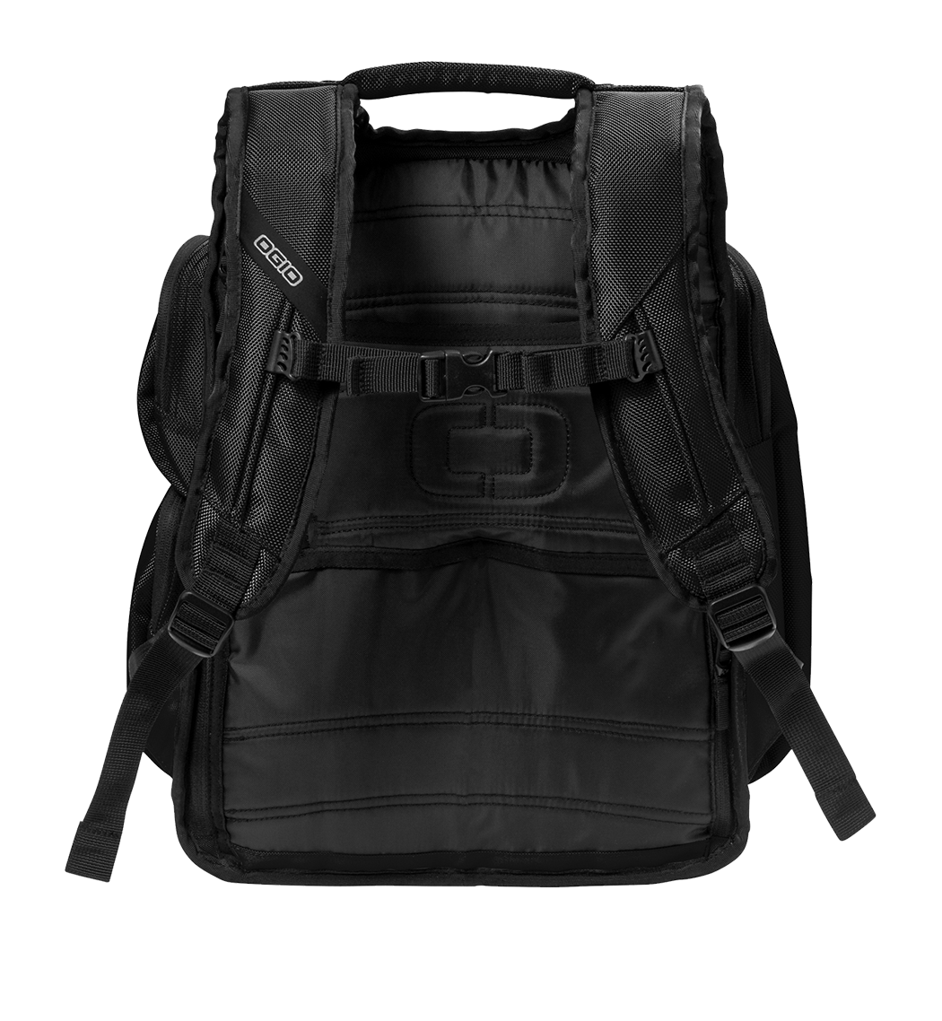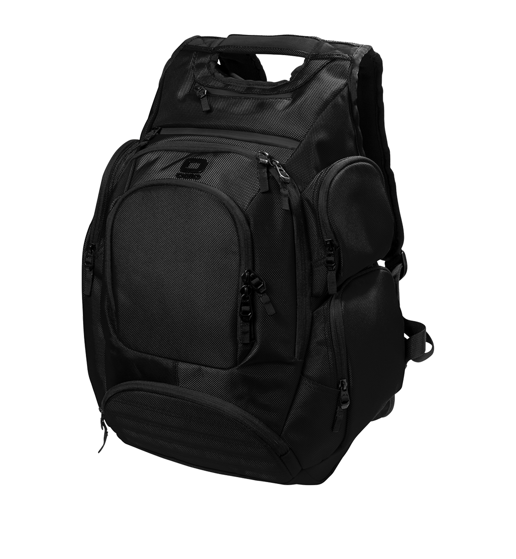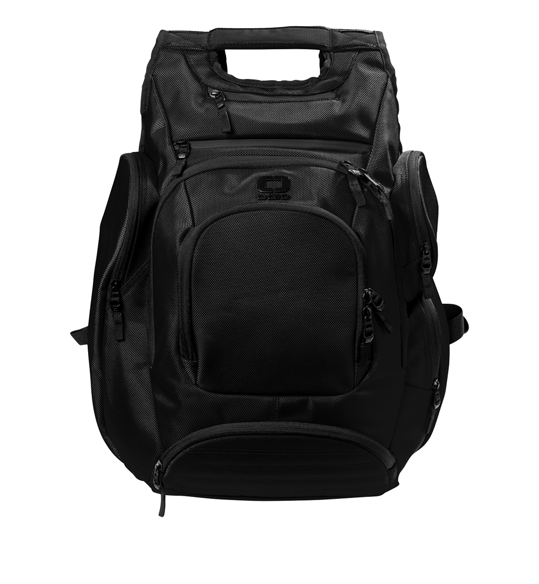1 000D/1 000D ballistic poly PVC Easy-grip top handle Back panel side-entry padded laptop pocket Large center storage area Side power cord and mouse storage pockets Internal file sleeve Weatherproof fleece-lined digital media/audio pockets Adjustable sternum strap Deluxe organization panel Integrated luggage trolley pocket on back Laptop sleeve: 16.5 h x 12.5 w; fits most 15 laptops Dimensions: 17.7 h x 12.5 w x 10.6 d Capacity: 1 830 cu.in./30 L Weight: 2.42 lbs./1.1 kgNote: Bags not intended for use by children 12 and under.