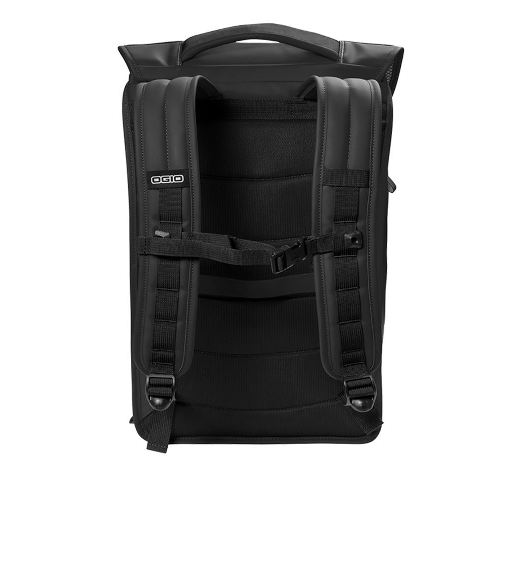 Rubberized 600D poly face-coated PU Rolltop folds under top cover with a heavy-duty metal hook closure Water-resistant clear-coated mesh pocket under top cover Two side zips for quick access to main compartment and laptop sleeve Large center storage area Deluxe organization panel Adjustable sternum strap Padded straps with daisy chain details Integrated luggage trolley pocket on back Laptop sleeve: 20 h x 11 w; fits most 13 laptops Dimensions: 20 h x 12 w x 5.9 d Capacity: 1 373 cu.in./22.5 L Weight: 2.49 lbs./1.02 kgNote: Bags not intended for use by children 12 and under.