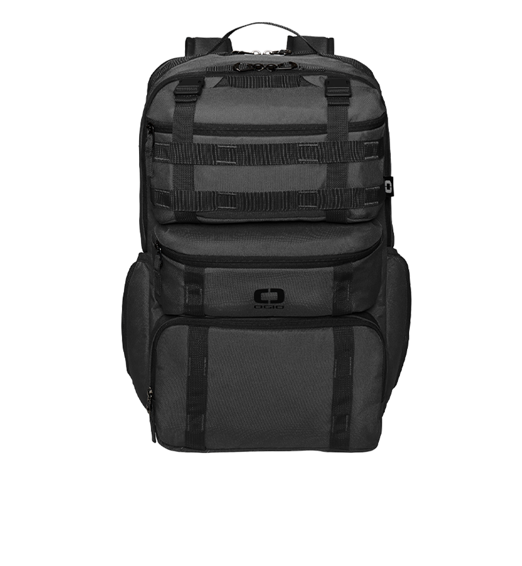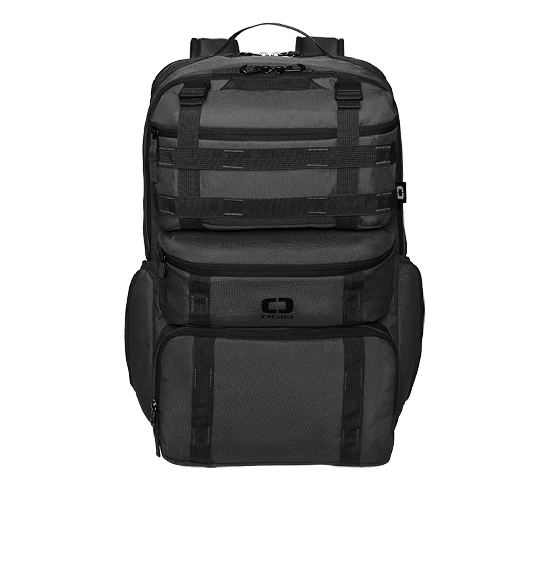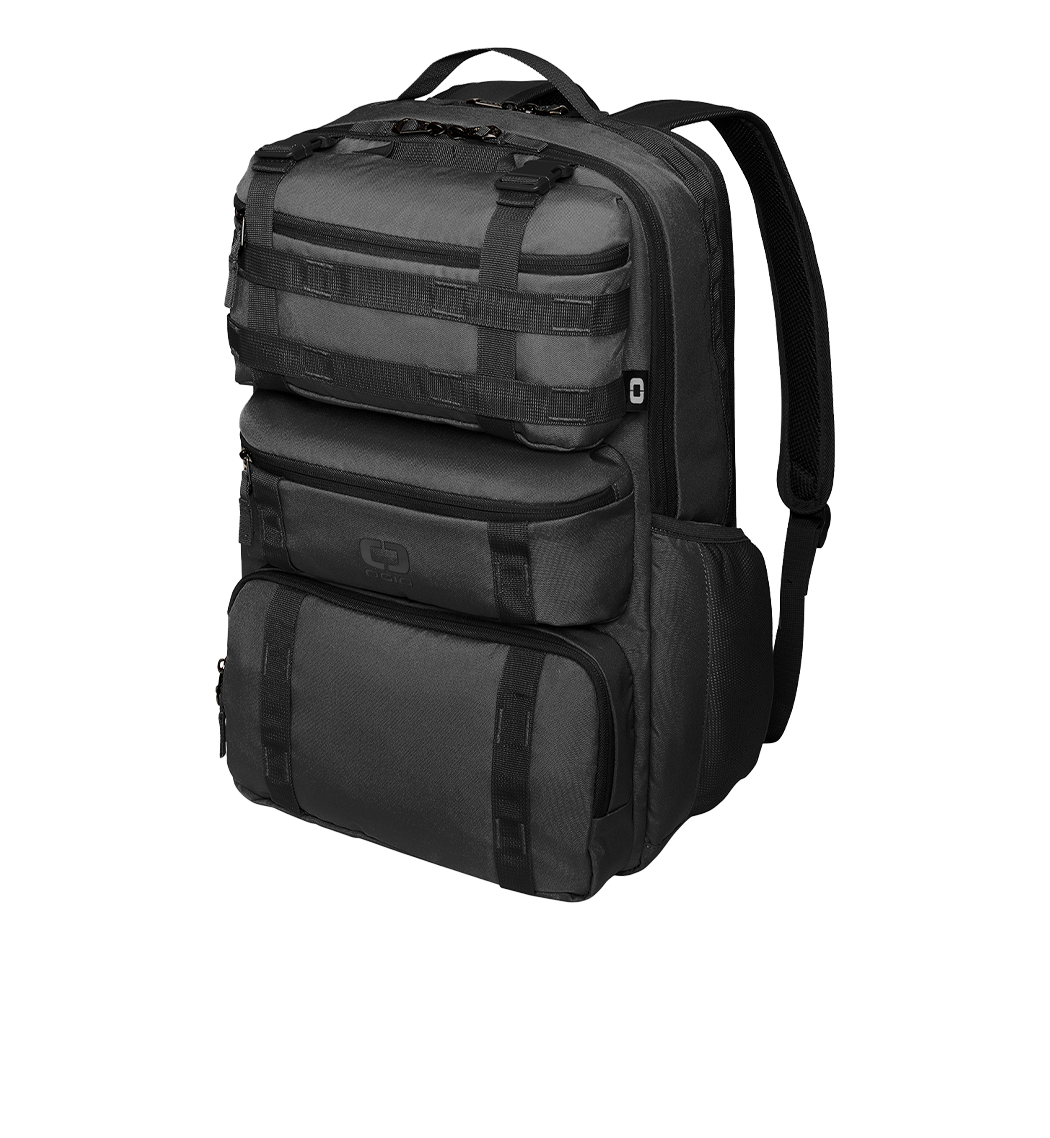 500D polyModular design with three front pouch pockets Removable front pouch pocket can be clipped inside the pack or worn separately as a hip packDaisy chain detailLarge main compartment with interior organizationSide mesh pocketFully adjustable shoulder strapsIntegrated luggage trolley pass through on backHigh-density O heat transferLaptop sleeve: 13 h x 12.4 w; fits most 15 laptops Dimensions: 19.68 h x 11.8 w x 5.94 d Capacity: 1 526 cu. in./25 L Weight: 2.27 lbs./1.03 kgNote: Bags not intended for use by children 12 and under.
