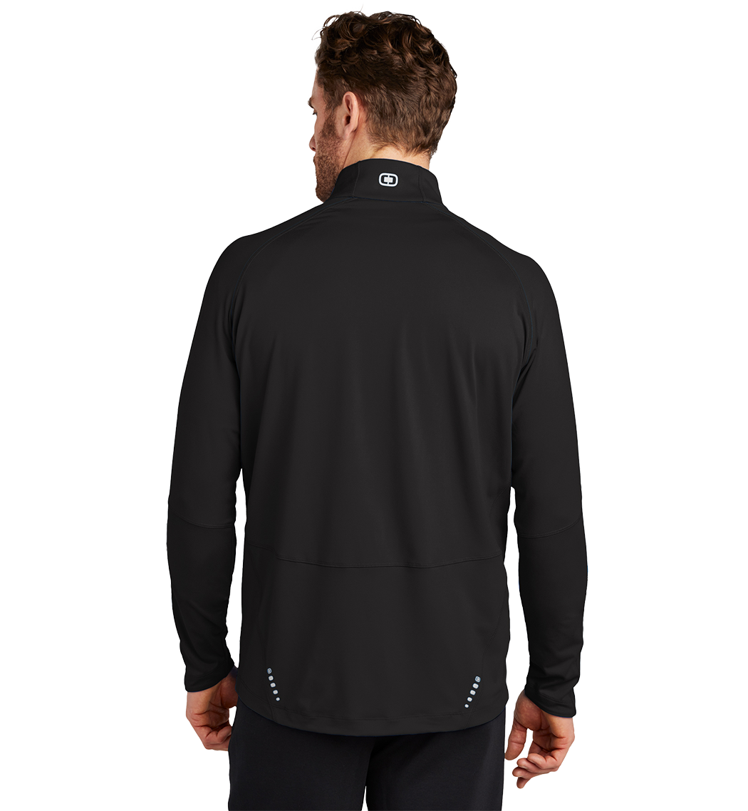 Drop tail hem with reflective stacked O heat transfers at lower back panels