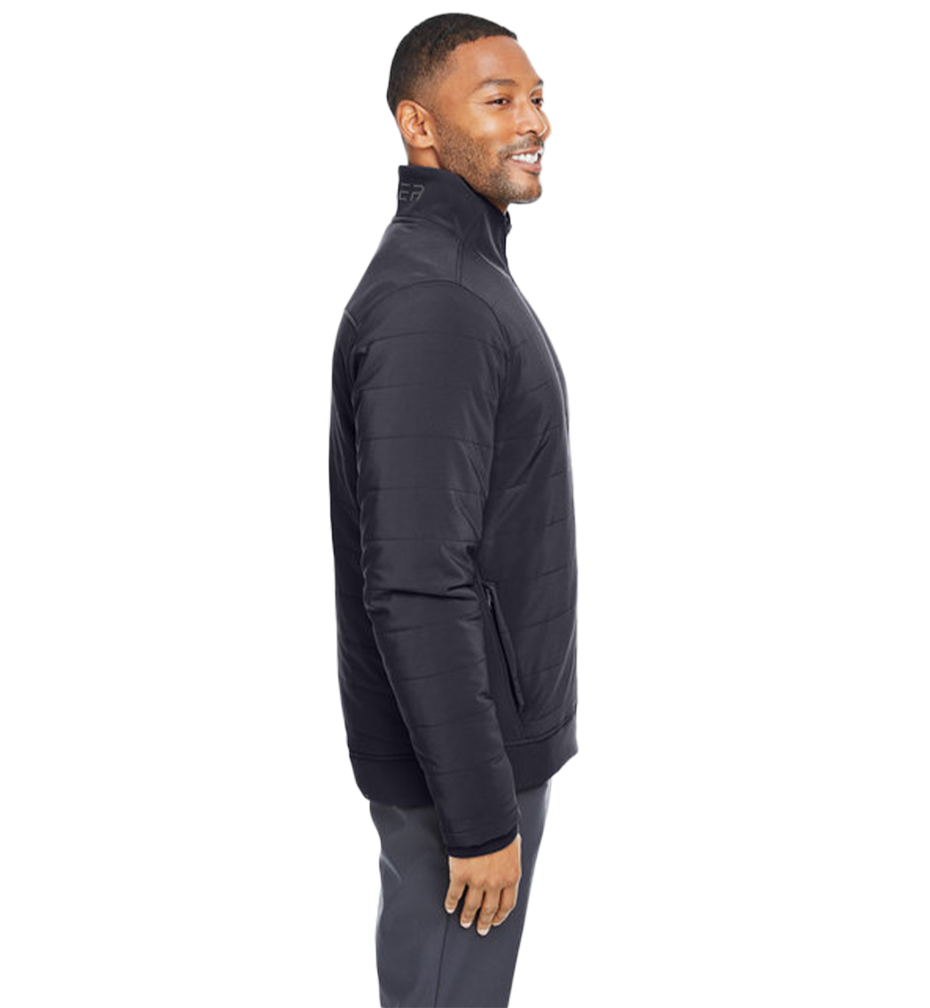 Reverse coil center front zipper w/ dye to match rubberized branded zipper pull