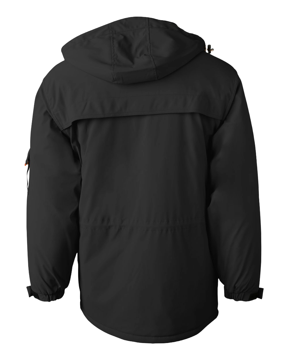 Bungee cord cinch in the waist of the outer jacket